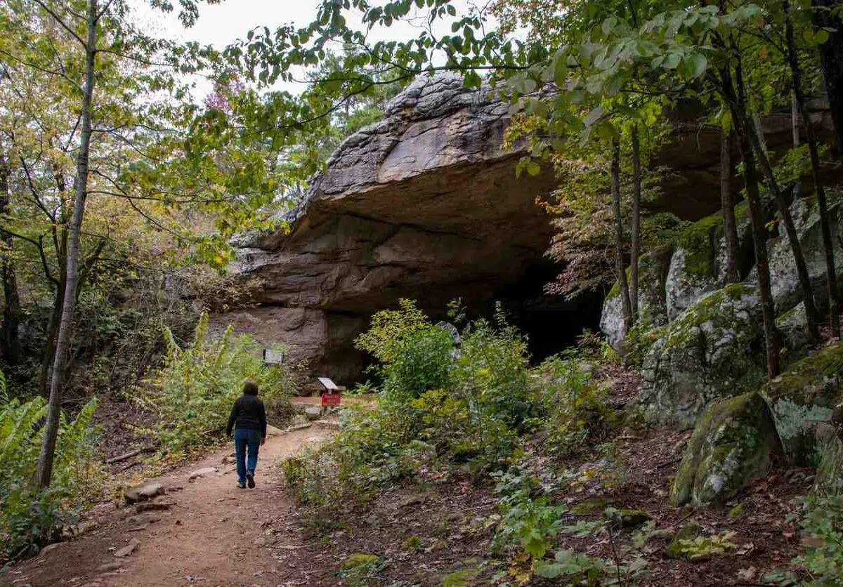 The Cedar Falls Trail at Petit Jean State Park takes you to a 95-foot waterfall surrounded by bright fall colors. These trails are great for all hiking skill levels. Walk these paths to enjoy Arkansas’s autumn beauty, with colorful leaves and scenic spots up close.