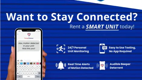 We’re now offering Smart Storage Units powered by StorageDefender, bringing next-level protection and peace of mind to your self-storage experience! What Makes It Smart? Smart Storage Units work just like today’s most trusted smart home devices. With built-in motion detection and 24/7 personal monitoring, you’ll receive instant text alerts if any activity is detected inside your unit. It’s simple, secure, and always on -because your peace of mind should come standard. Keep track of the ins and outs of your storage unit by renting a Smart Storage Unit today!
